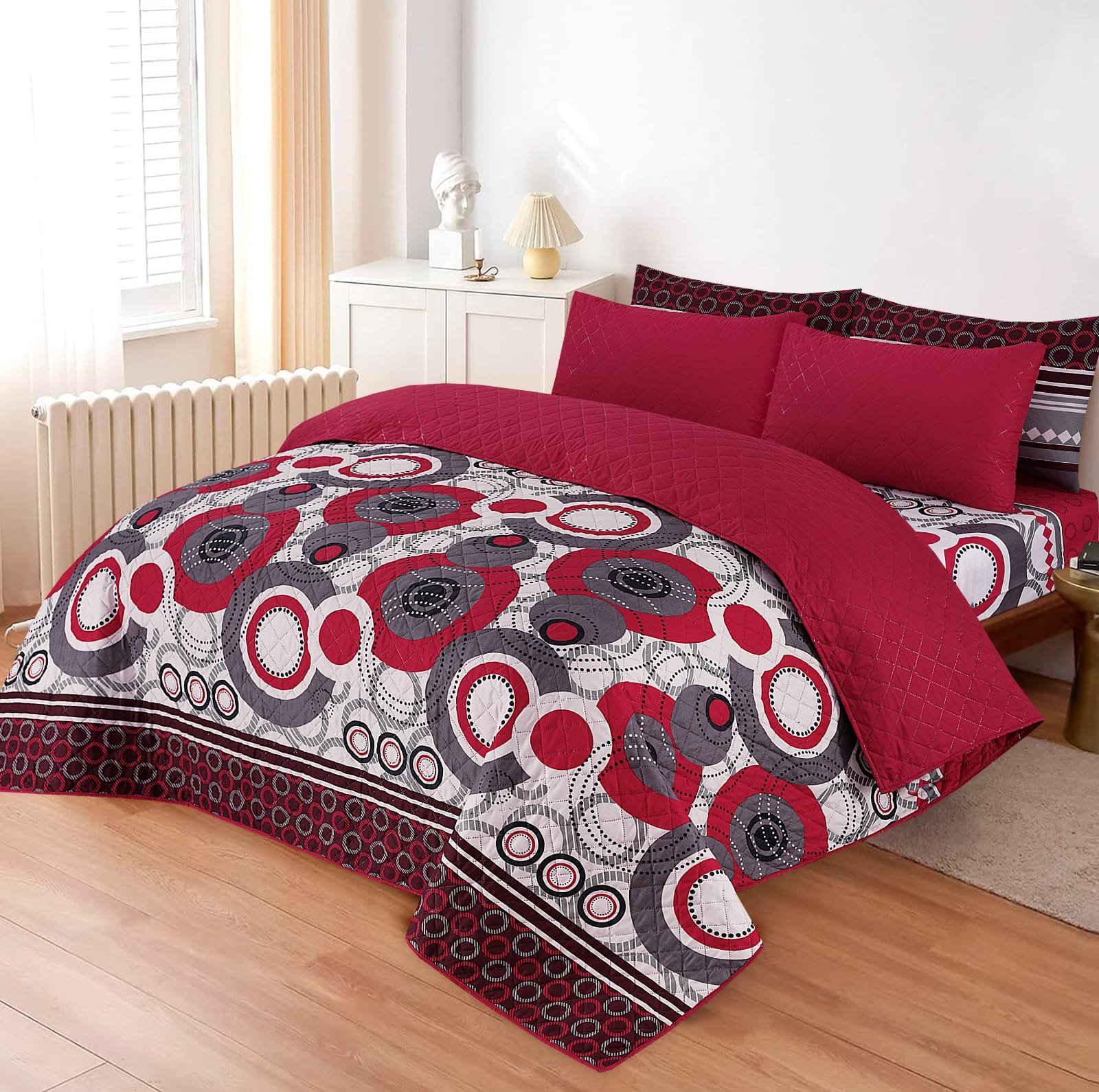 Transform your bedroom into a sanctuary of comfort and style with our luxury quilted bedspread 6 piece set. This exquisite bedspread not only enhances the aesthetic appeal of your space but also adds a layer of warmth for colder nights. Its elegant design can complement any decor, making it a versatile choice for various bedroom themes.